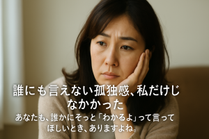 こうした孤独感は、恥ずかしいことでも、弱さの表れでもありません。むしろ、自分の気持ちに正直に向き合っている証でもあります。「誰にも言えない」と思っていた気持ちが、実は多くの人が感じている“心の声”だと知ることで、ほんの少し心が軽くなることもあるのです。