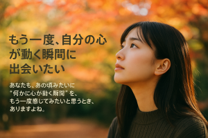 そんな時こそ、「心が動く瞬間」をもう一度取り戻してみることが大切です。それは大げさな出来事である必要はありません。例えば、たまたま開いた本の一節に心がふるえたとき。誰かと交わした短い会話で思わず笑顔になったとき。そんな小さな出来事でも、心は確かに反応してくれるのです。