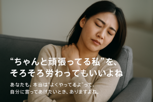 “ちゃんと頑張ってきた私”を、自分自身が労わってあげる。