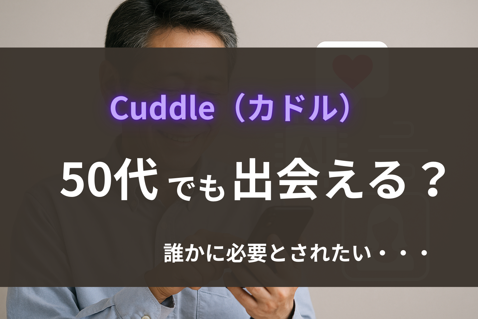 どれだけ条件を絞っても、時間や労力をかけて探すのが難しい年代だからこそ、カドルのAI機能は理想の出会いへの近道になります。無駄なく、手間なく、それでいて的確に。そんな“ちょうど良さ”が、多くの50代に受け入れられている理由のひとつです。
