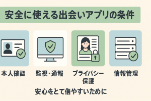 出会いアプリを選ぶときに一番大切なのは「安全に使えるかどうか」です。アプリのデザインや使いやすさよりも、裏側の仕組みや運営の体制がしっかりしているかが安心につながります。ここでは、安全に利用できるアプリを見極めるためのポイントを分かりやすく整理します。